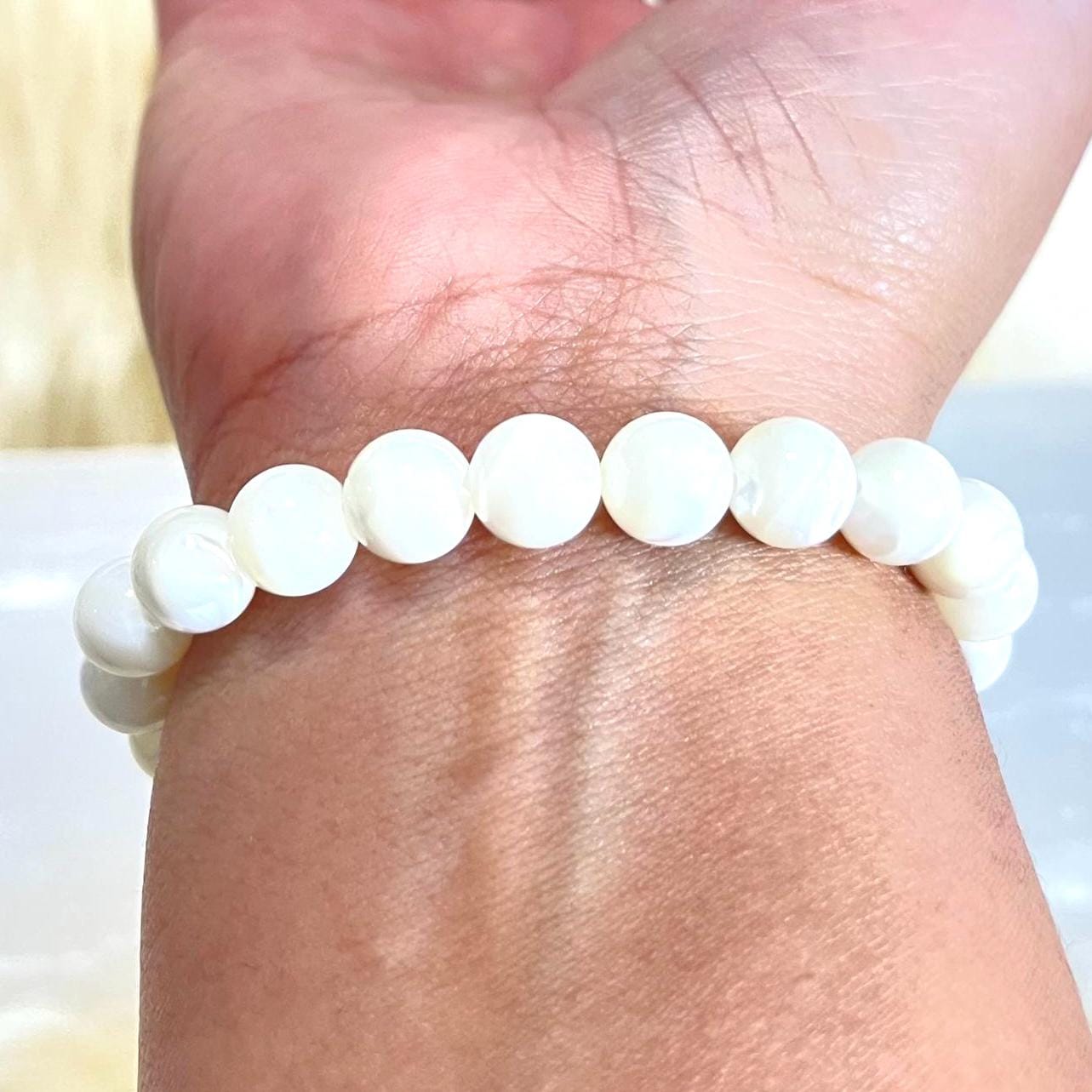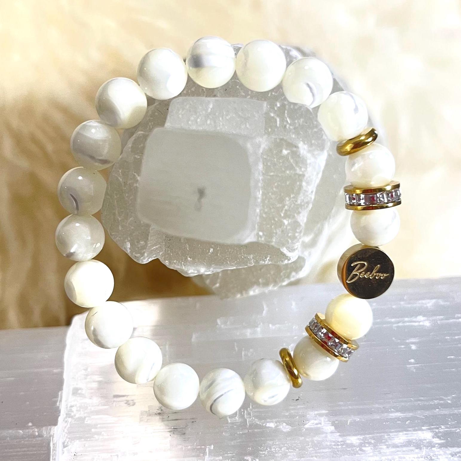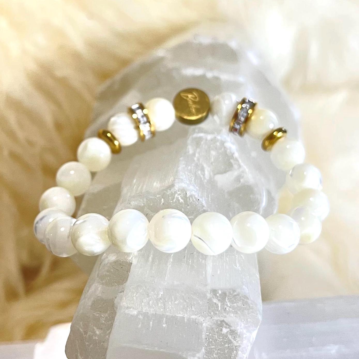 Crafted with luminous mother of pearl beads, each piece reflects soft natural light, creating an iridescent glow that feels both classic and modern. Mother of pearl has long been treasured for its beauty, symbolism, and calming energy. Known as a stone of harmony and protection, it is believed to attract peace, prosperity, and emotional balance — making this bracelet not only stylish but meaningful as well.