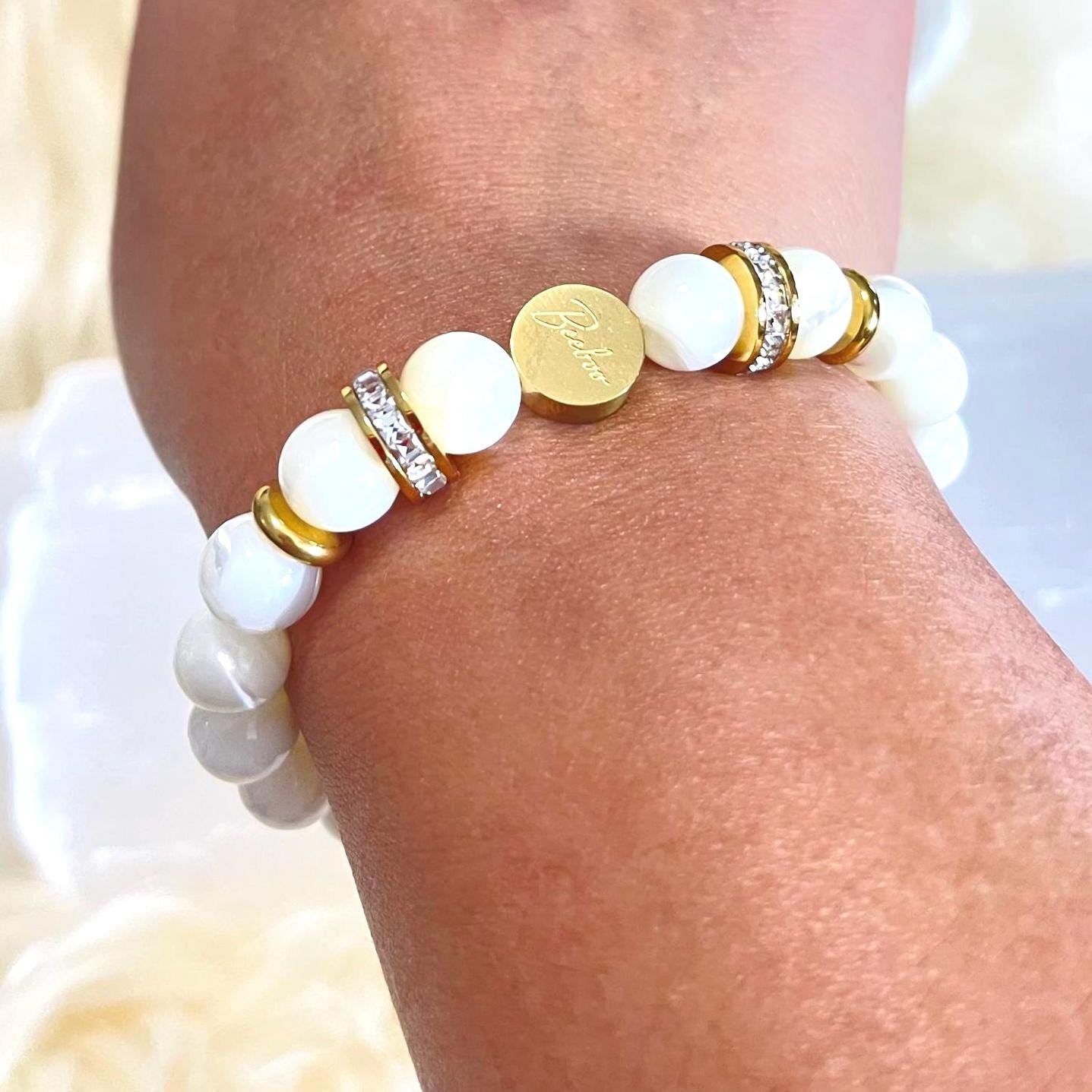 Each bracelet is carefully handcrafted to ensure high quality and attention to detail. The 8mm beads are smooth, polished, and perfectly sized for a balanced, luxurious look. The rhinestone element adds sophistication without overpowering the natural beauty of the mother of pearl.