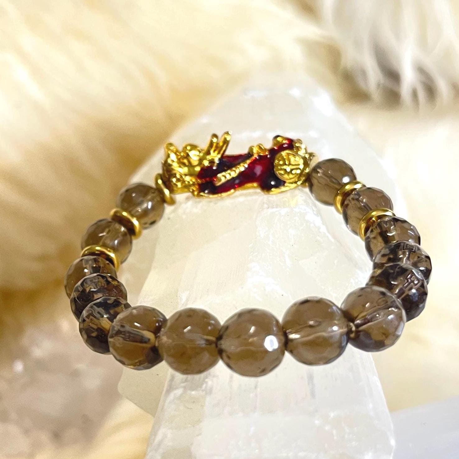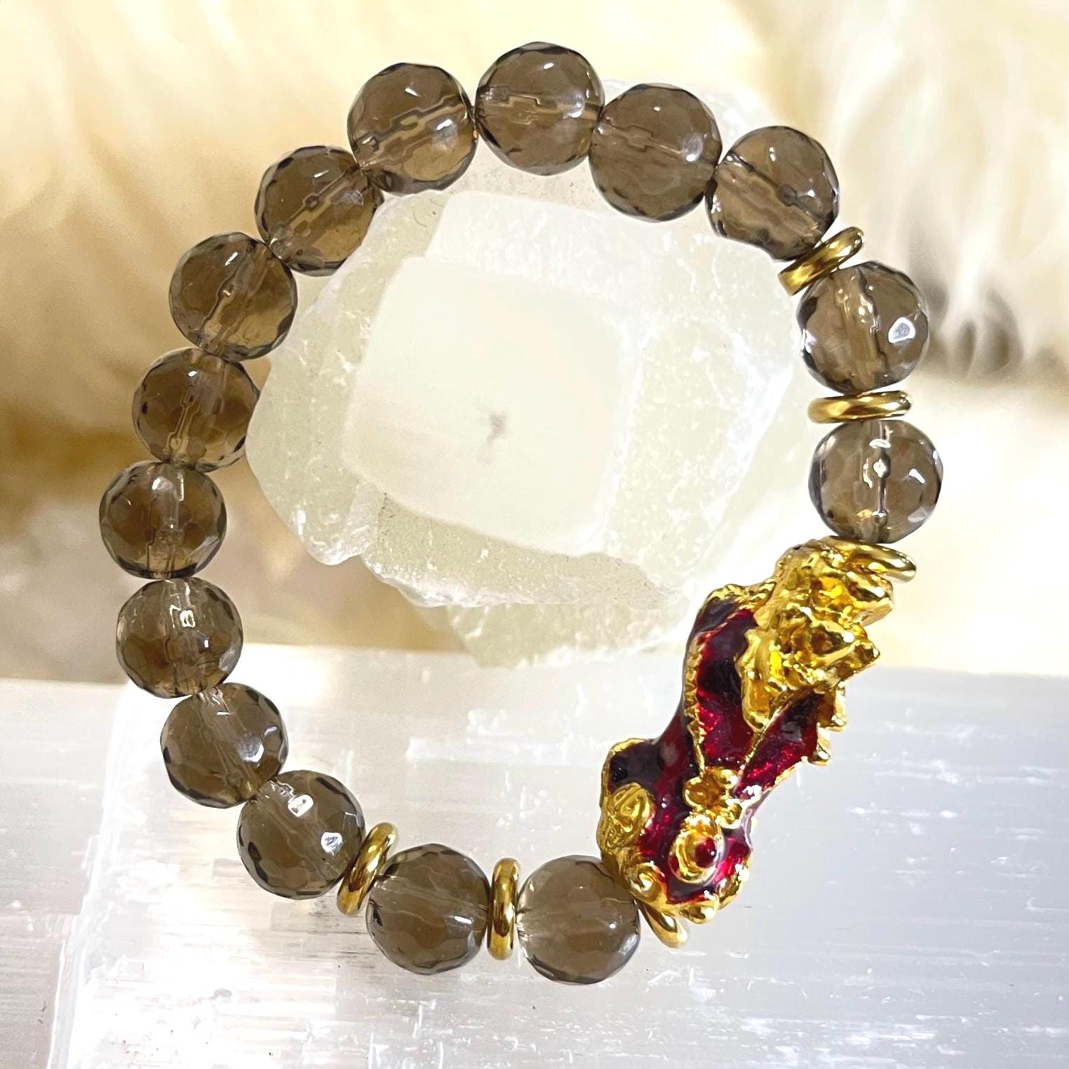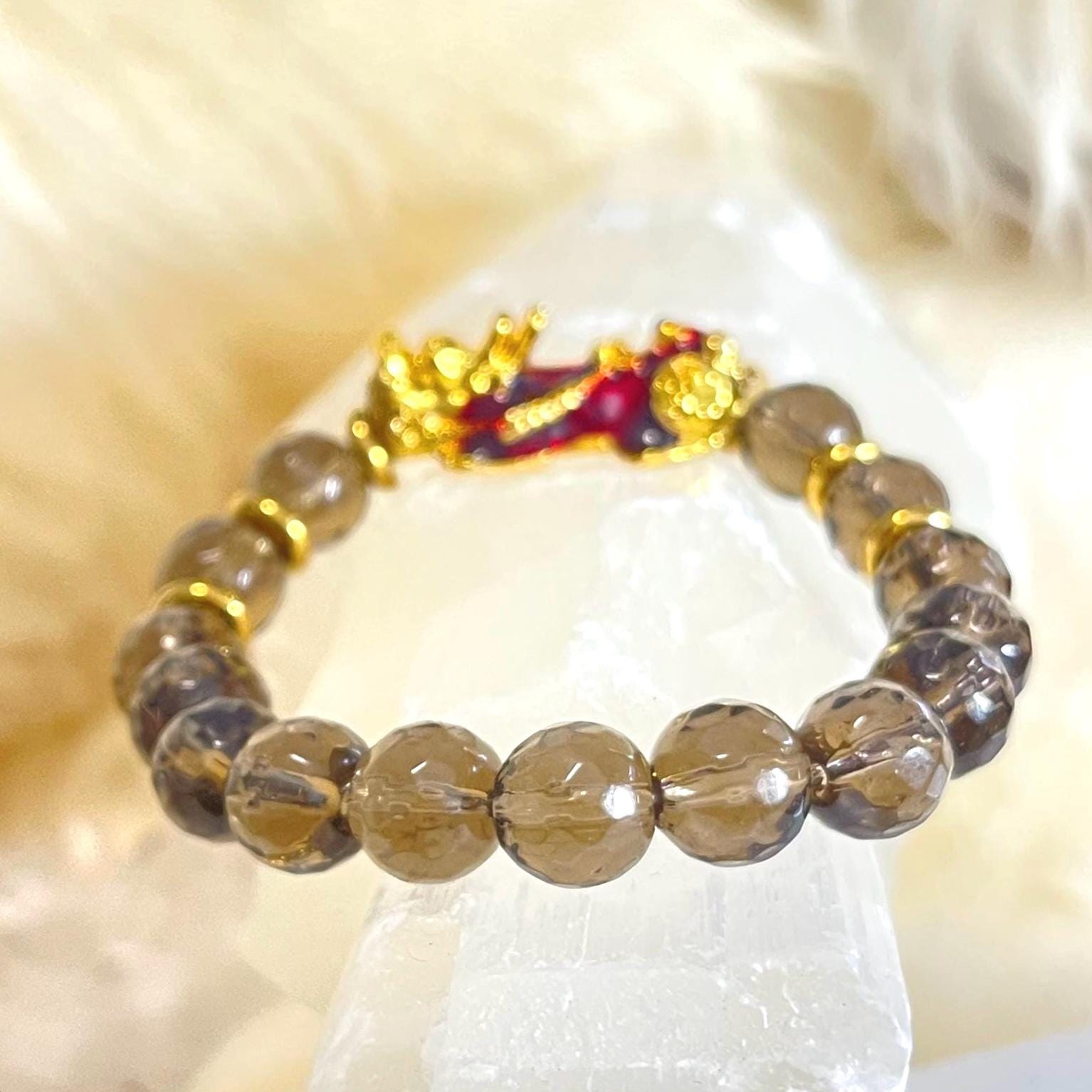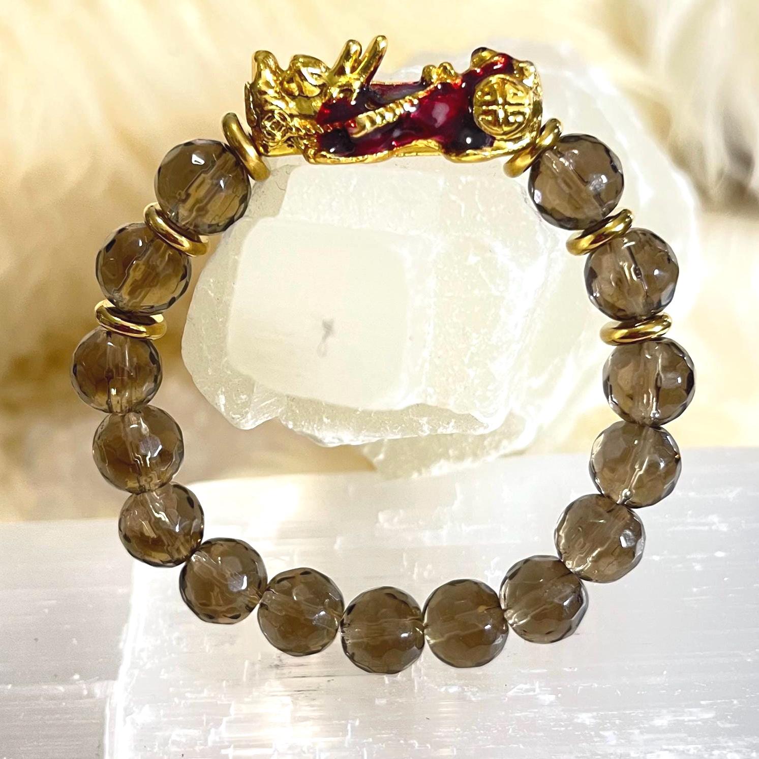Whether you are seeking Feng Shui prosperity, energetic protection, or emotional grounding, the Faceted Smoky Quartz Pixiu Bracelet is designed to align with your intentions and elevate your everyday style.