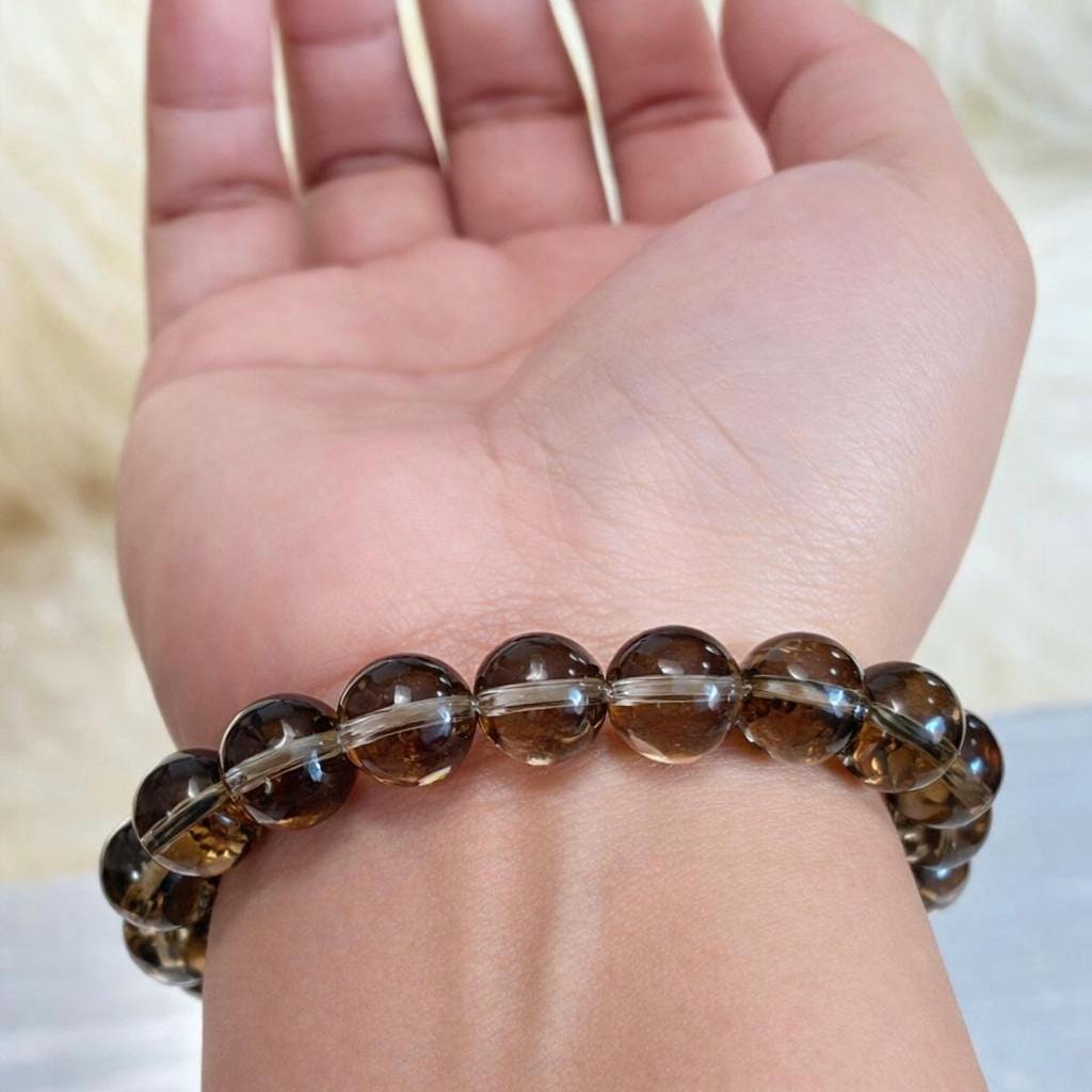 This bracelet features stunning 10mm faceted Smoky Quartz, admired for its rich smoky tones and brilliant reflective finish. The faceted cut enhances the stone’s natural depth, giving it an elegant, high-end look.