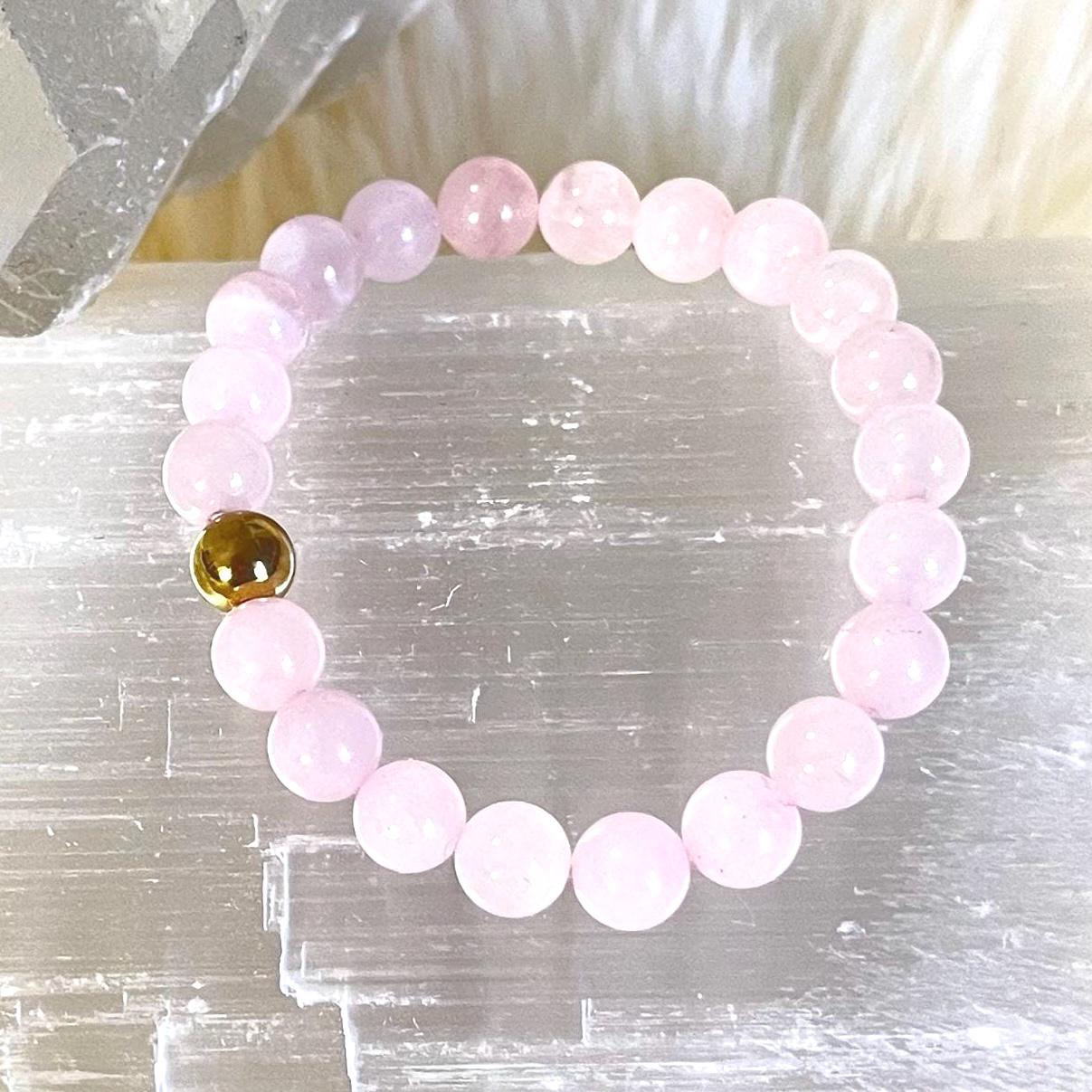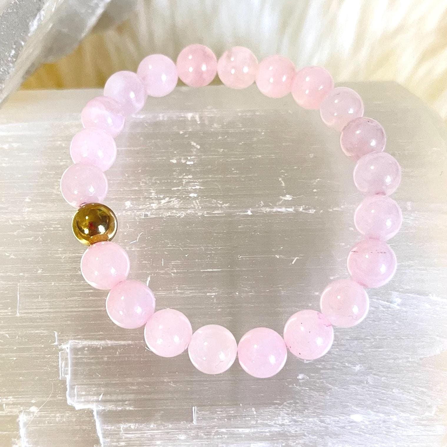 Embrace the soft beauty of divine femininity and timeless elegance with this luxury minimalist rose quartz bracelet, crafted with genuine 8mm rose quartz gemstones and finished with a radiant gold filled accent. Designed for those who appreciate both refined style and spiritual meaning, this bracelet is more than jewelry — it is an intentional piece of wearable energy.