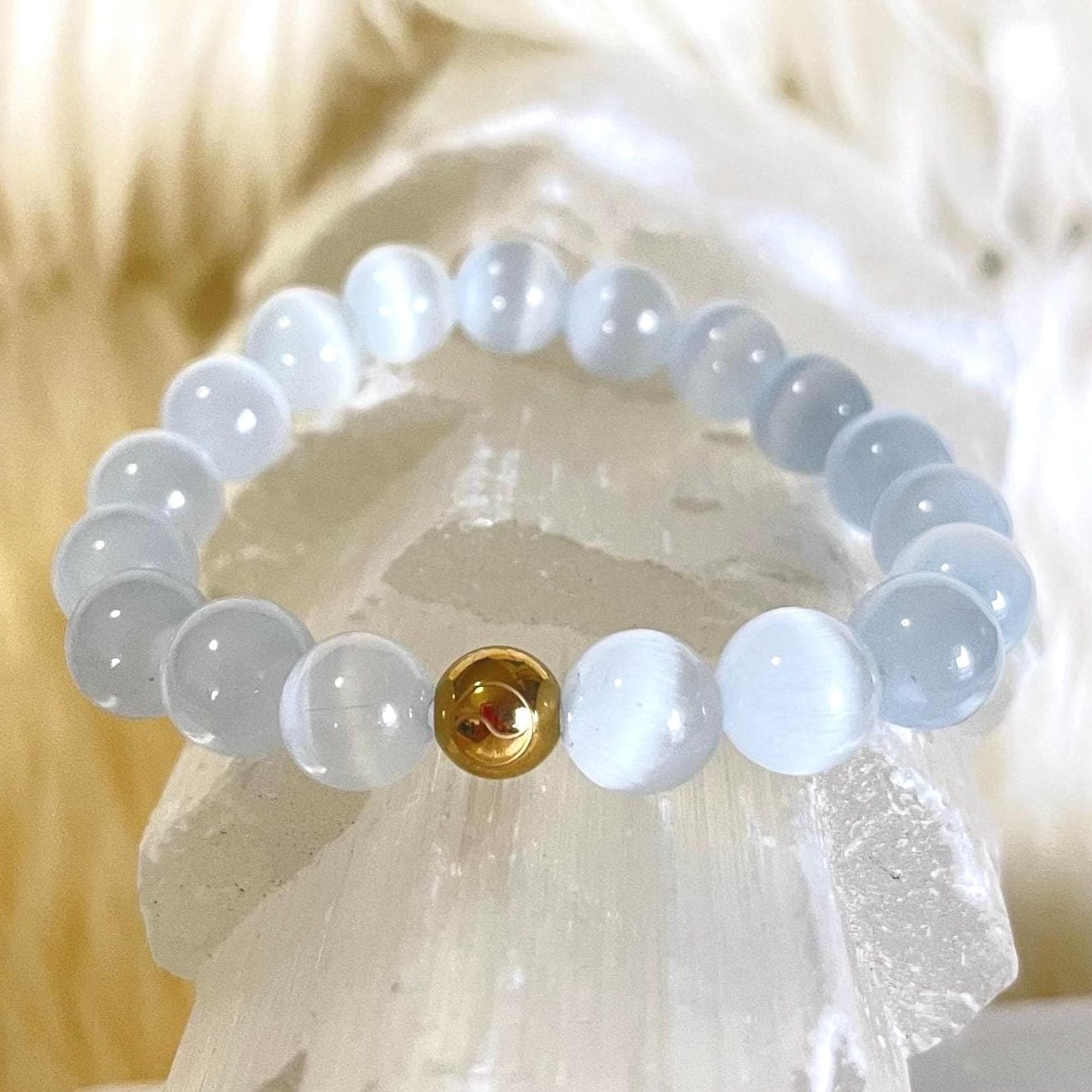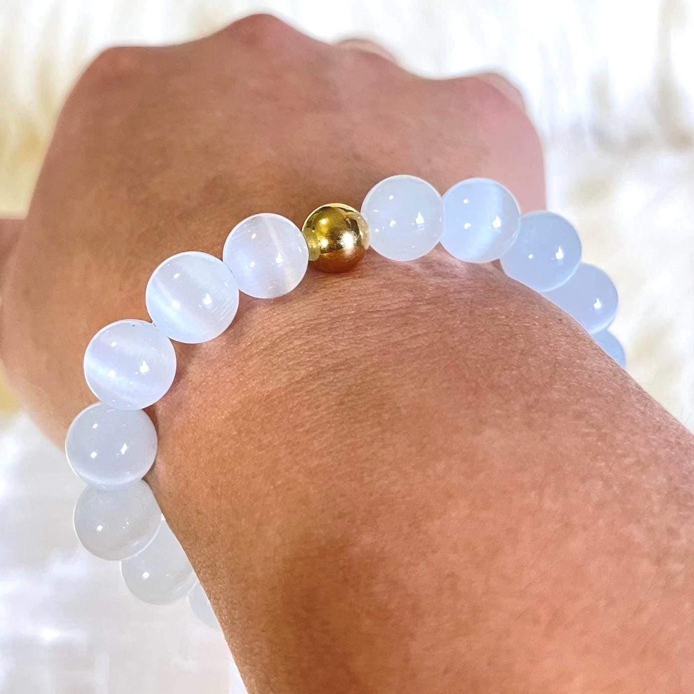 Step into elegance, intuition, and radiant energy with this luxury minimalist Cat’s Eye bracelet, handcrafted with luminous gemstone beads and finished with a refined gold filled accent. Designed for those who love elevated simplicity with deeper spiritual meaning, this bracelet is both a statement of style and a talisman of protection.
