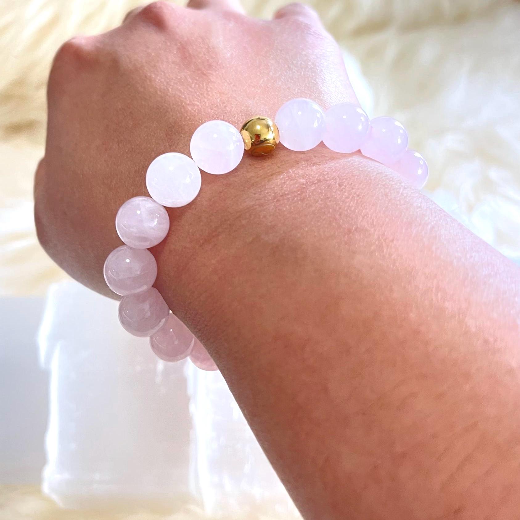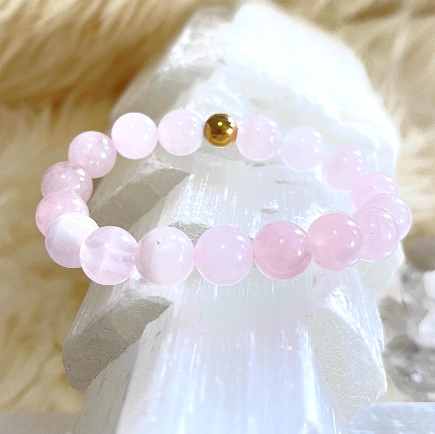 Embrace the soft beauty of divine femininity and timeless elegance with this luxury minimalist rose quartz bracelet, crafted with genuine 8mm rose quartz gemstones and finished with a radiant gold filled accent. Designed for those who appreciate both refined style and spiritual meaning, this bracelet is more than jewelry — it is an intentional piece of wearable energy.