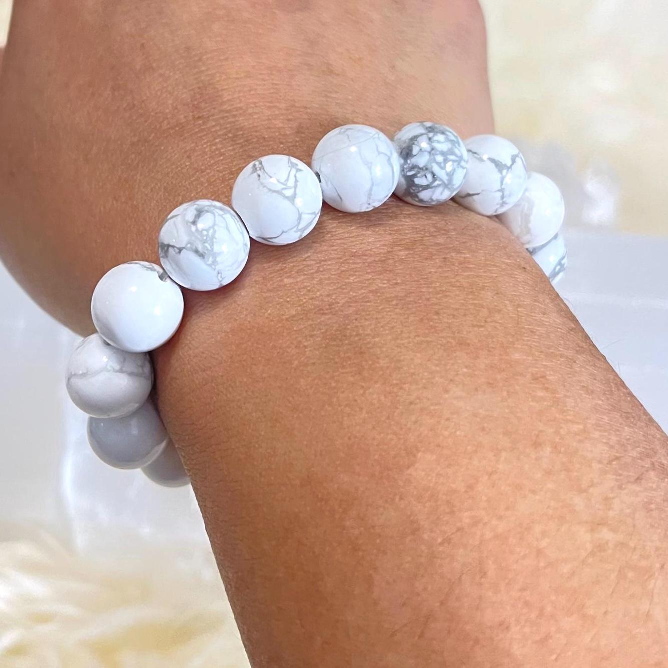 Howlite is admired for its soft white tones and delicate gray marbling, creating a clean, calming aesthetic that pairs effortlessly with any outfit. Each bead is naturally unique, making every bracelet one of a kind.