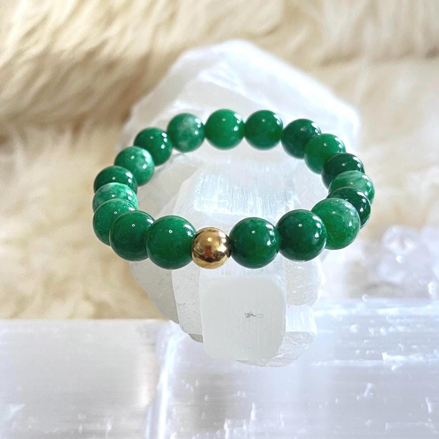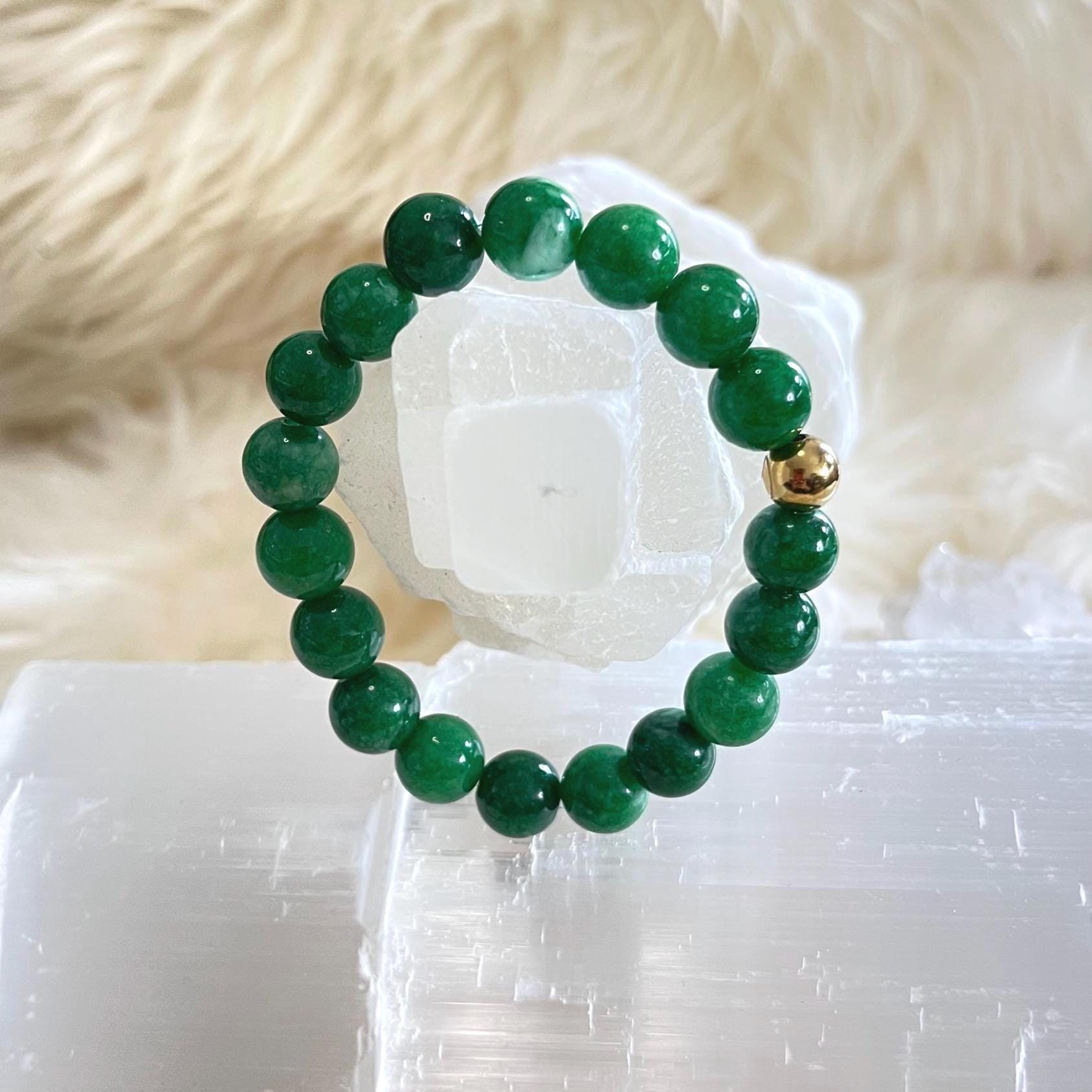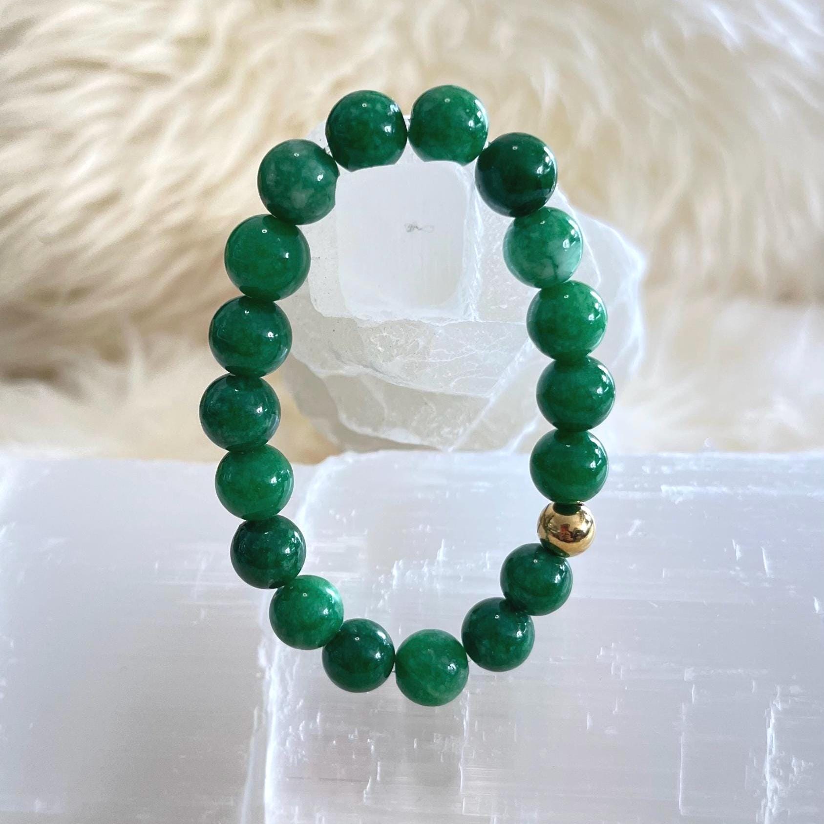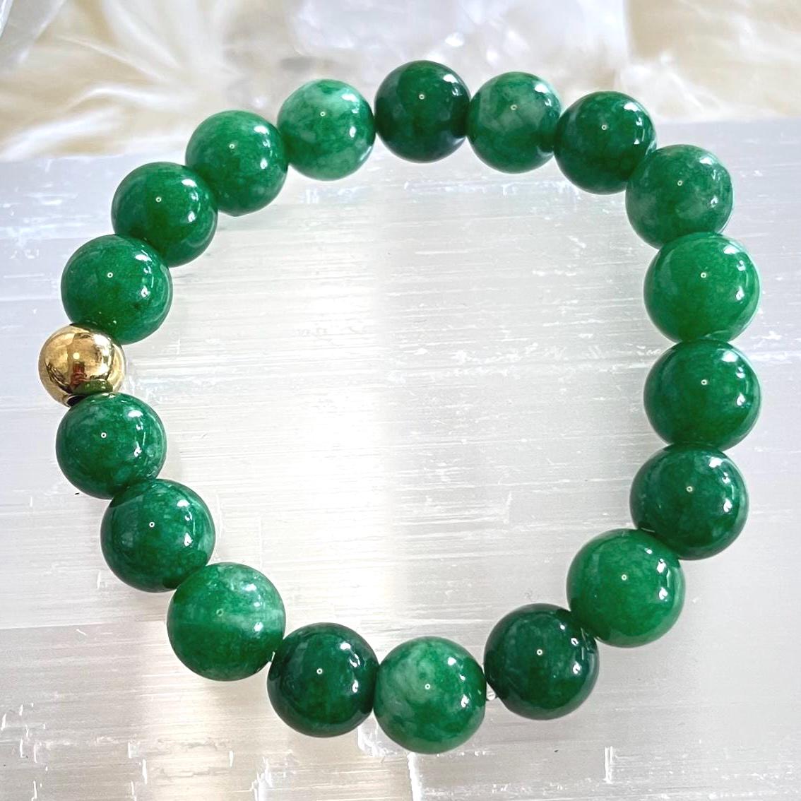 jade bracelet, gold filled accent bracelet, unisex gemstone bracelet, luck and prosperity jewelry, minimalist stretch bracelet, healing crystal jade bracelet, 10mm gemstone bracelet, gift for him or her, luxury jade jewelry, modern unisex accessory