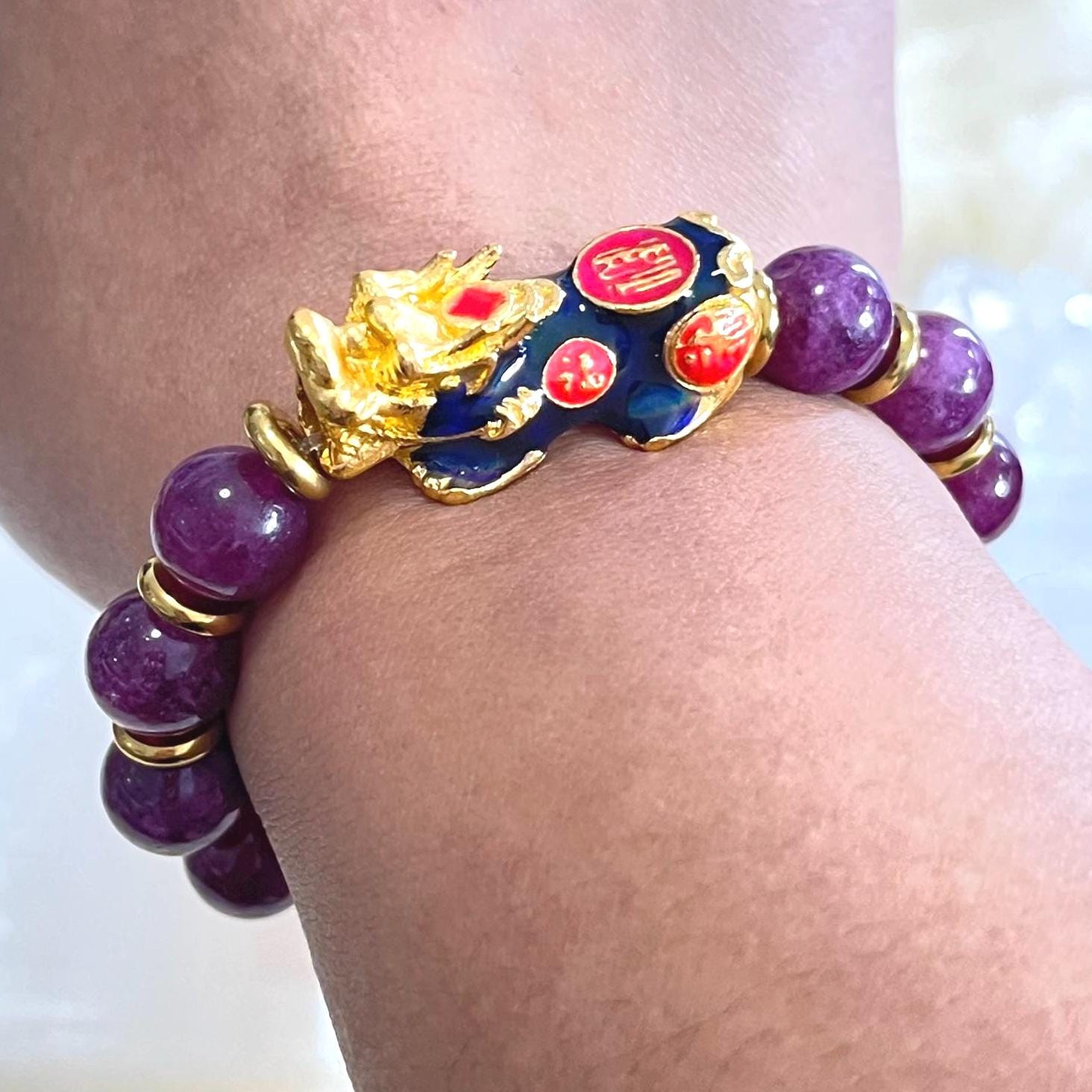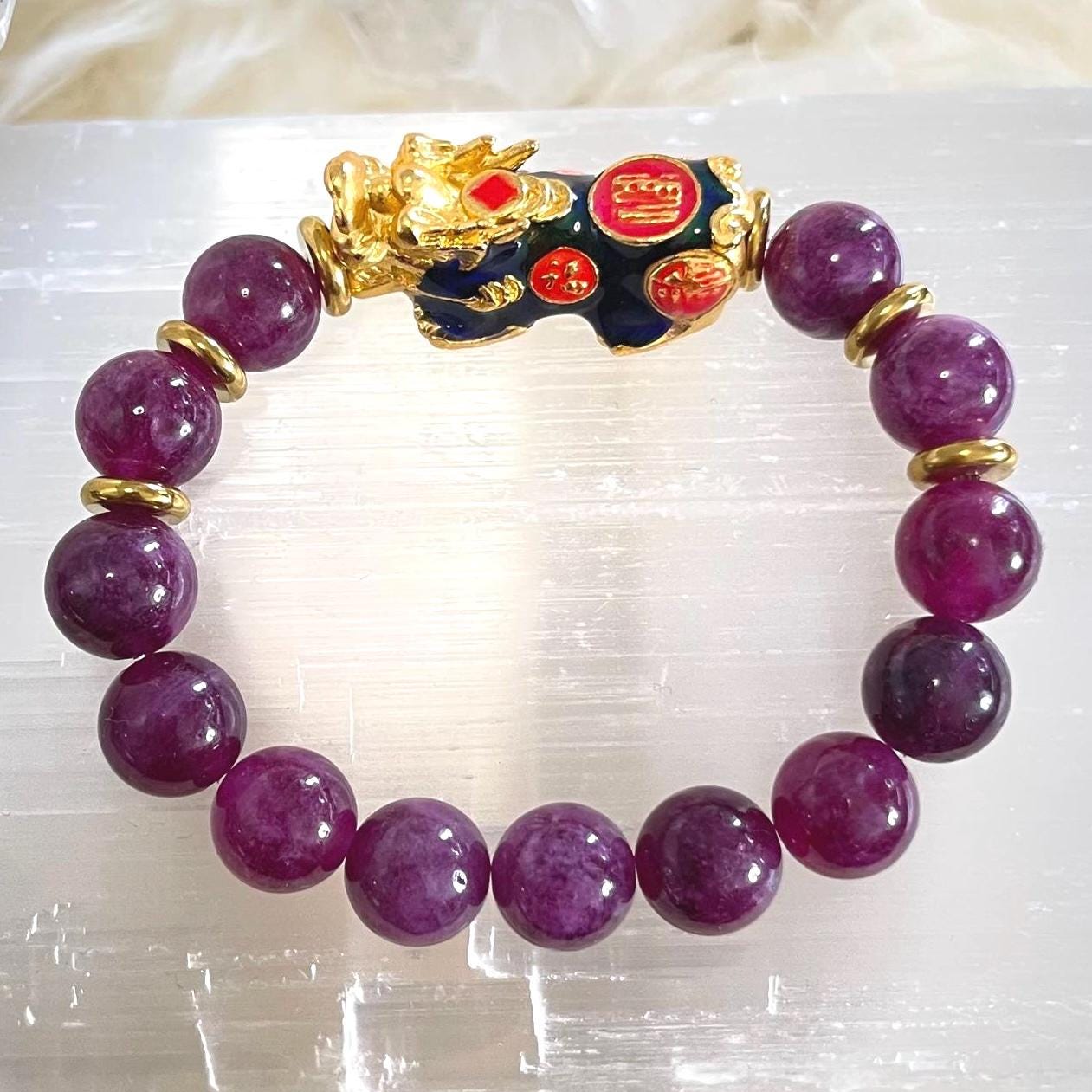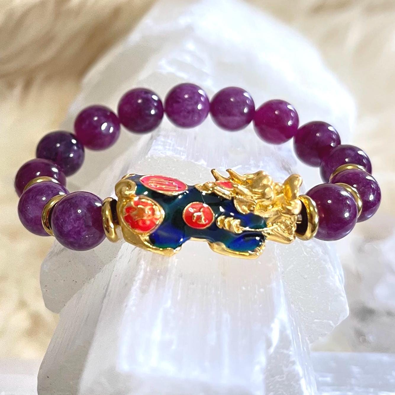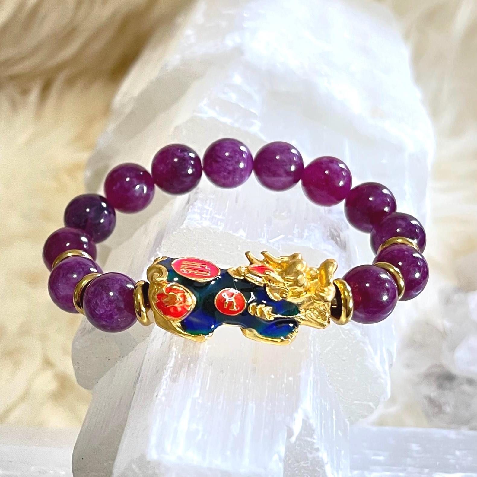 Lepidolite Pixiu Bracelet 10mm | Color Changing Pixiu Bracelet | Dragon Pixiu Wealth Bracelet | Feng Shui Money Bracelet | Healing Crystal Bracelet | Lepidolite Bracelet for Anxiety Relief | Protection Bracelet for Luck