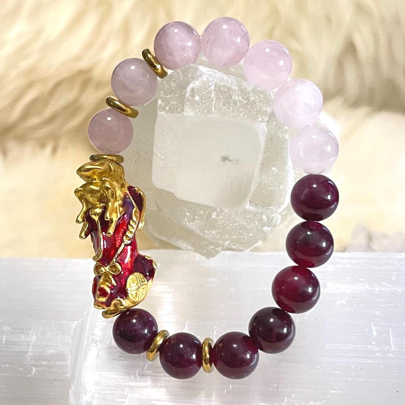 Garnet + Rose Quartz + Pixiu – Love Meets Prosperity