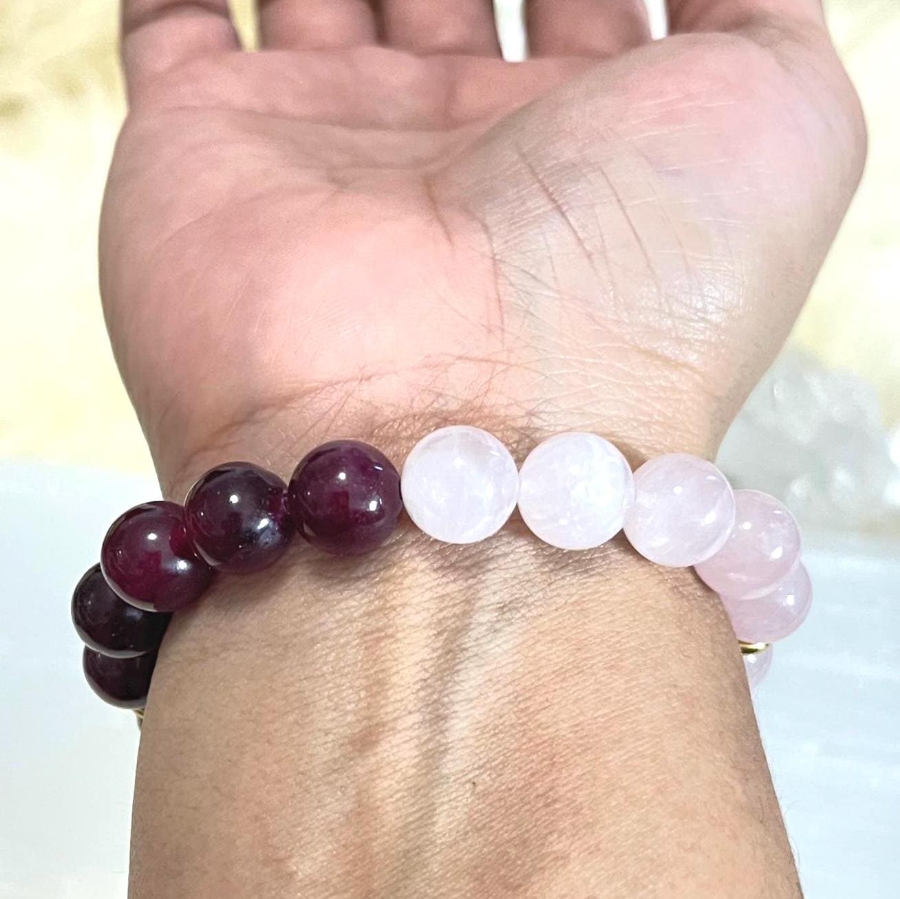 Garnet and Rose Quartz create a beautiful harmony of passion and peace — making this bracelet perfect for those manifesting love, strength, and lasting fortune.