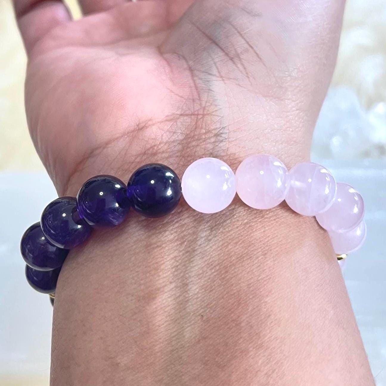 ✔ Natural 10mm Amethyst & Rose Quartz gemstone beads